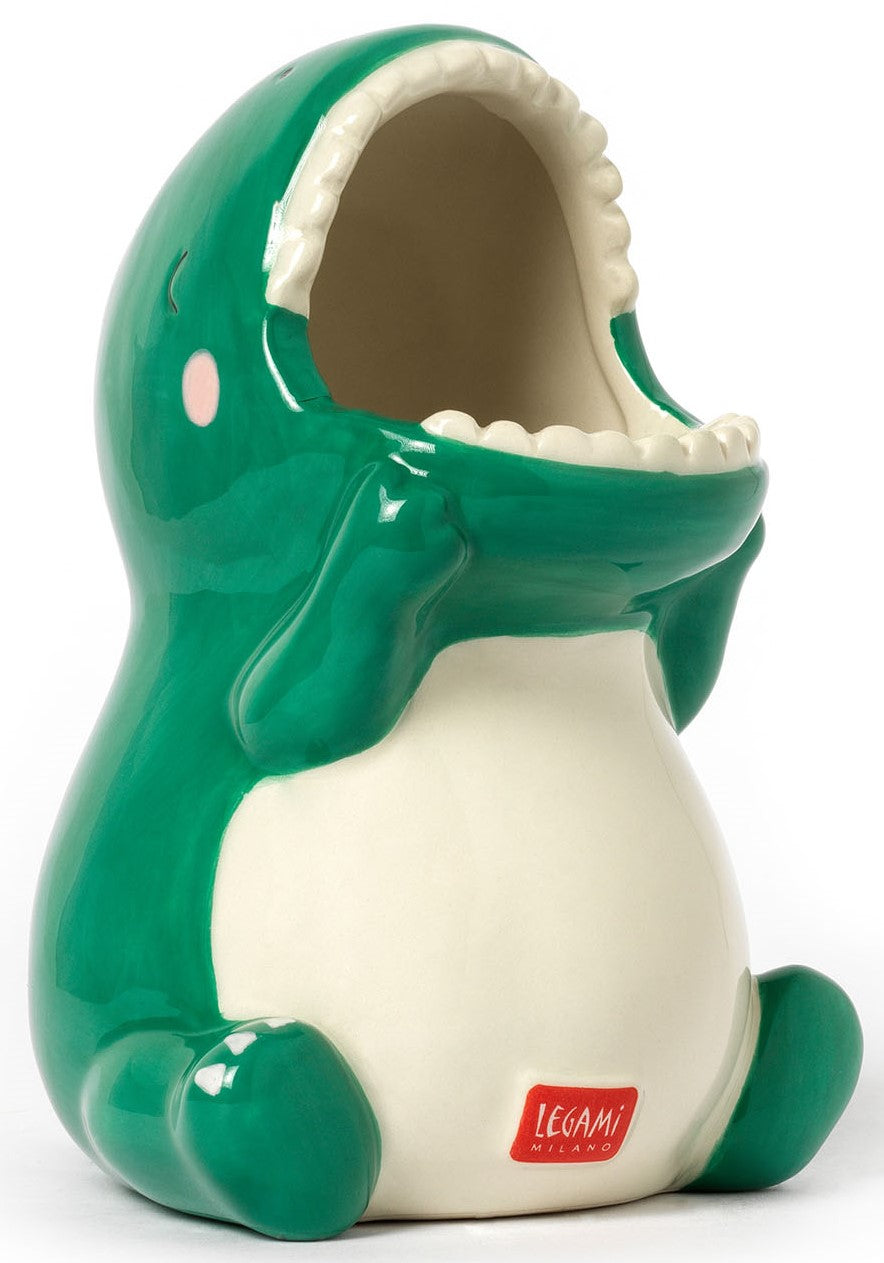 Penneholderne er en morsom og unik måte å oppbevare penner og blyanter på. Den er laget av høykvalitets keramikk og har en detaljert og fargerik design som ligner på en dinosaur.
