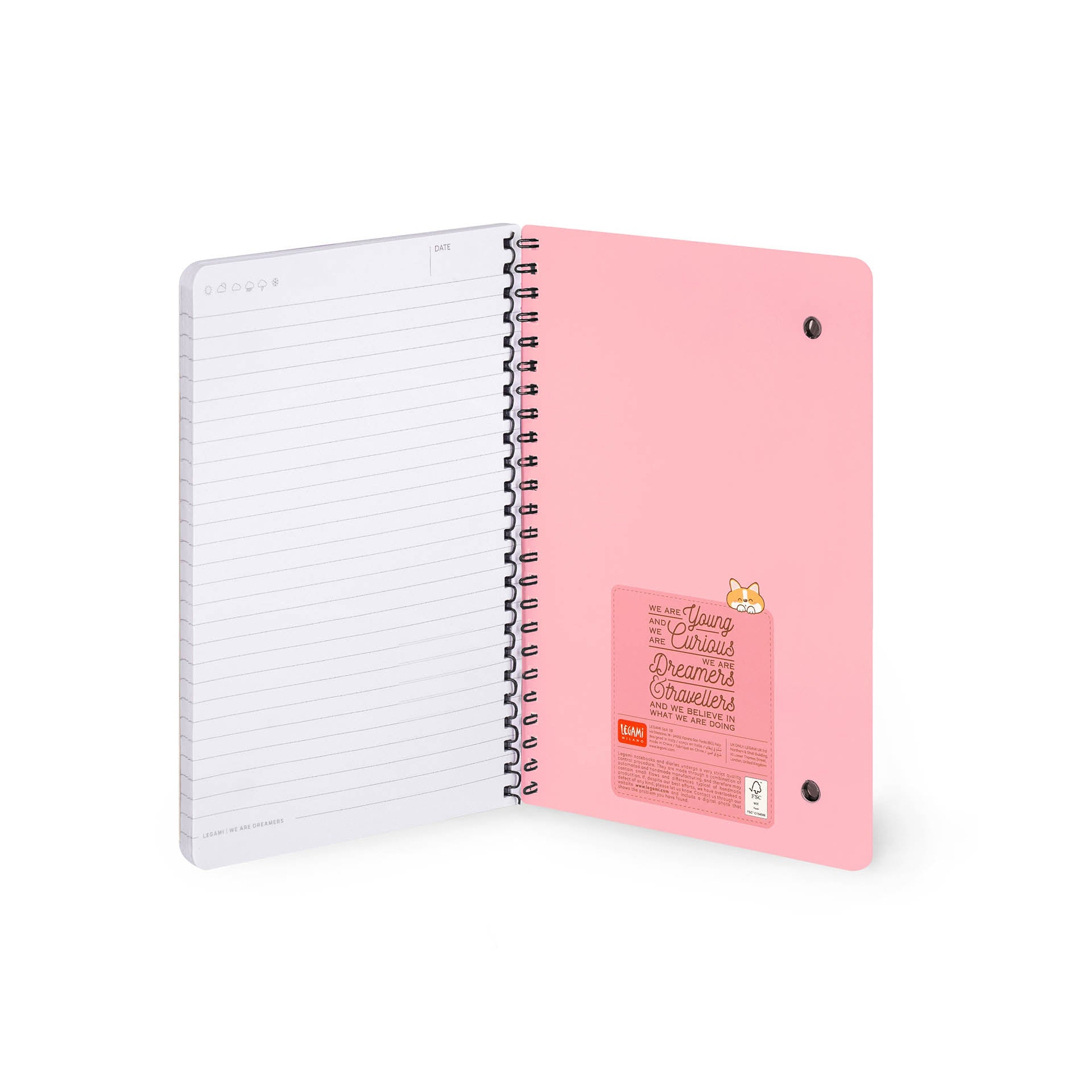 I A5-format og med 160 linjerte sider får du god plass til notater, lister og små tanker. Den spiralbundne ryggen gjør den lett å bruke, og det harde omslaget med elastisk bånd holder innholdet trygt. Et ark med søte corgi-klistremerker følger med!