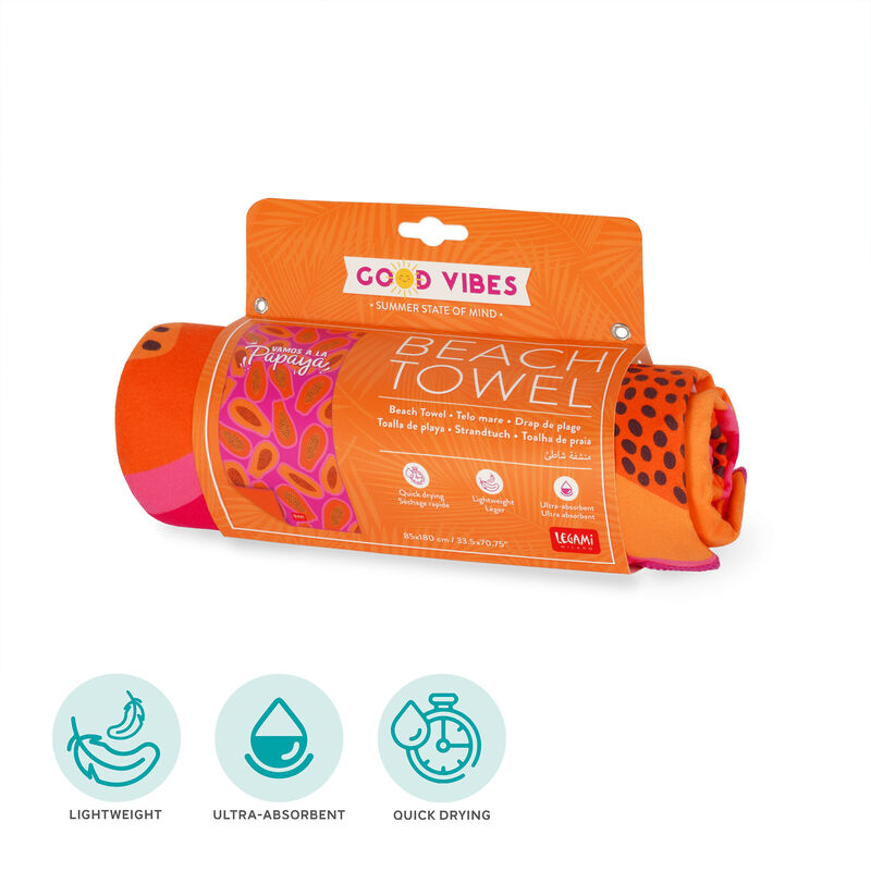 Ikke la håndkle få ta hele plassen i baggen. Bruk heller ultra absorberende badehåndkle fra Legami. Disse tørker fort, tar liten plass og har lav vekt men stor komfort. Passer like godt på stranden som i gym baggen.